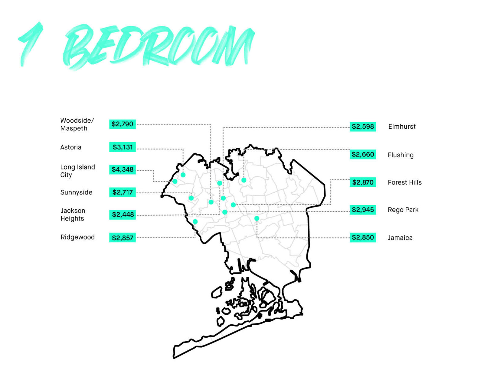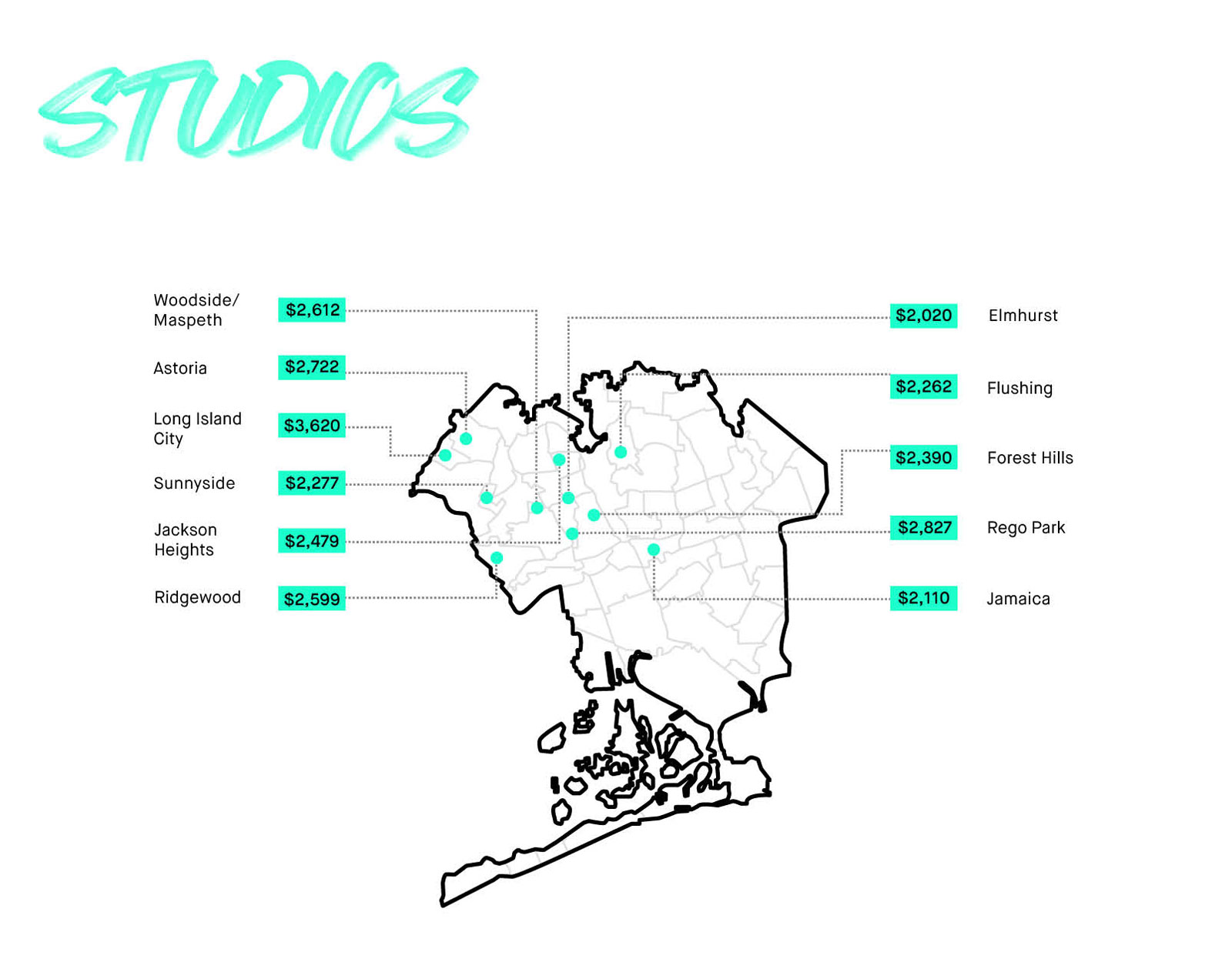 Studios | Long Island City $3,620 | Elmhurst $2,020 |